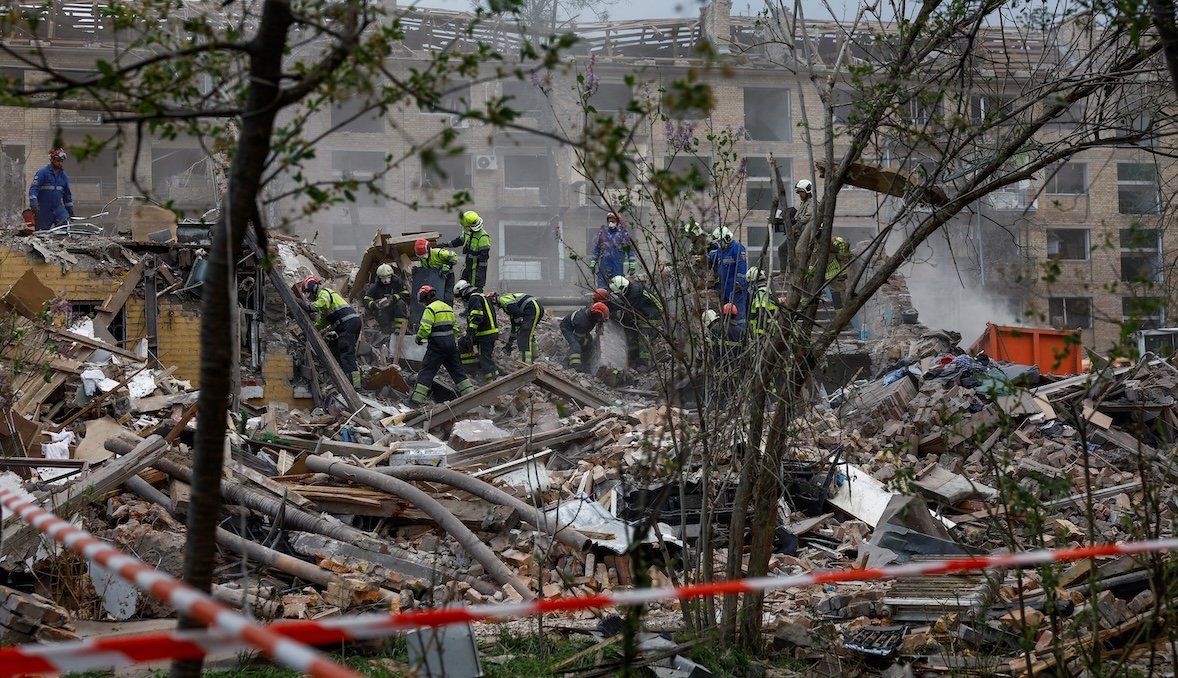 Rescuers search for a 17-year-old and his parents near an apartment building hit by a Russian missile strike, amid Russia's attack on Ukraine, in Kyiv, on April 24, 2025.