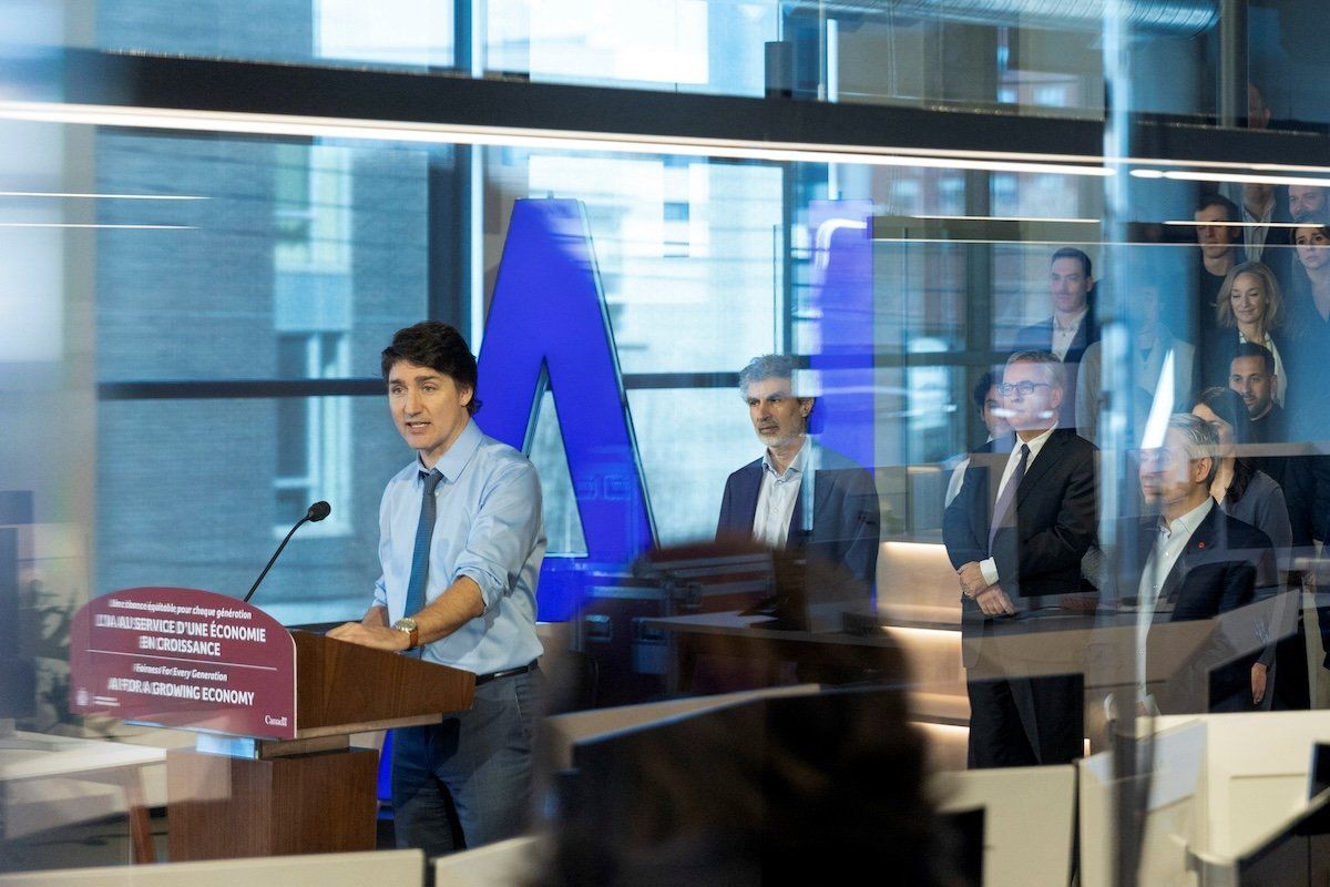 Canada’s Prime Minister Justin Trudeau visits the offices of artificial intelligence tech company ScaleAI in Montreal, Quebec, Canada, on April 7, 2024.