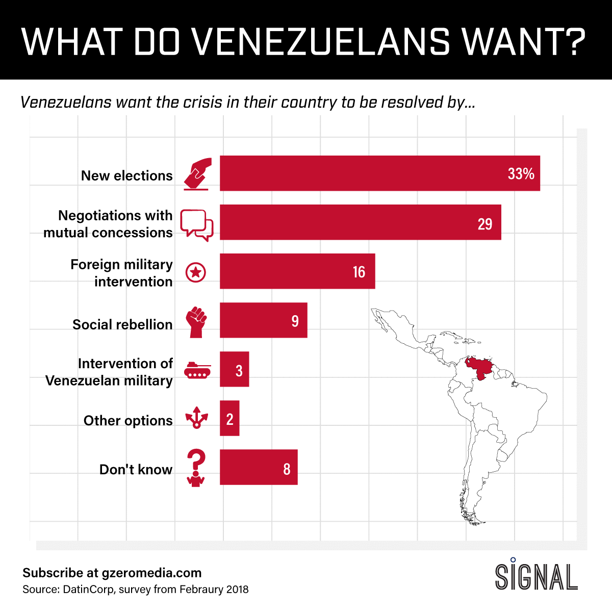 The US has warned that "all options" are on the table for Venezuela, including military intervention. But a US invasion of Venezuela, a country almost twice the size of Iraq, would present massive logistical challenges. Not to mention that Venezuelans themselves broadly oppose such a move. Here's how they'd like to see the conflict in their country resolved.