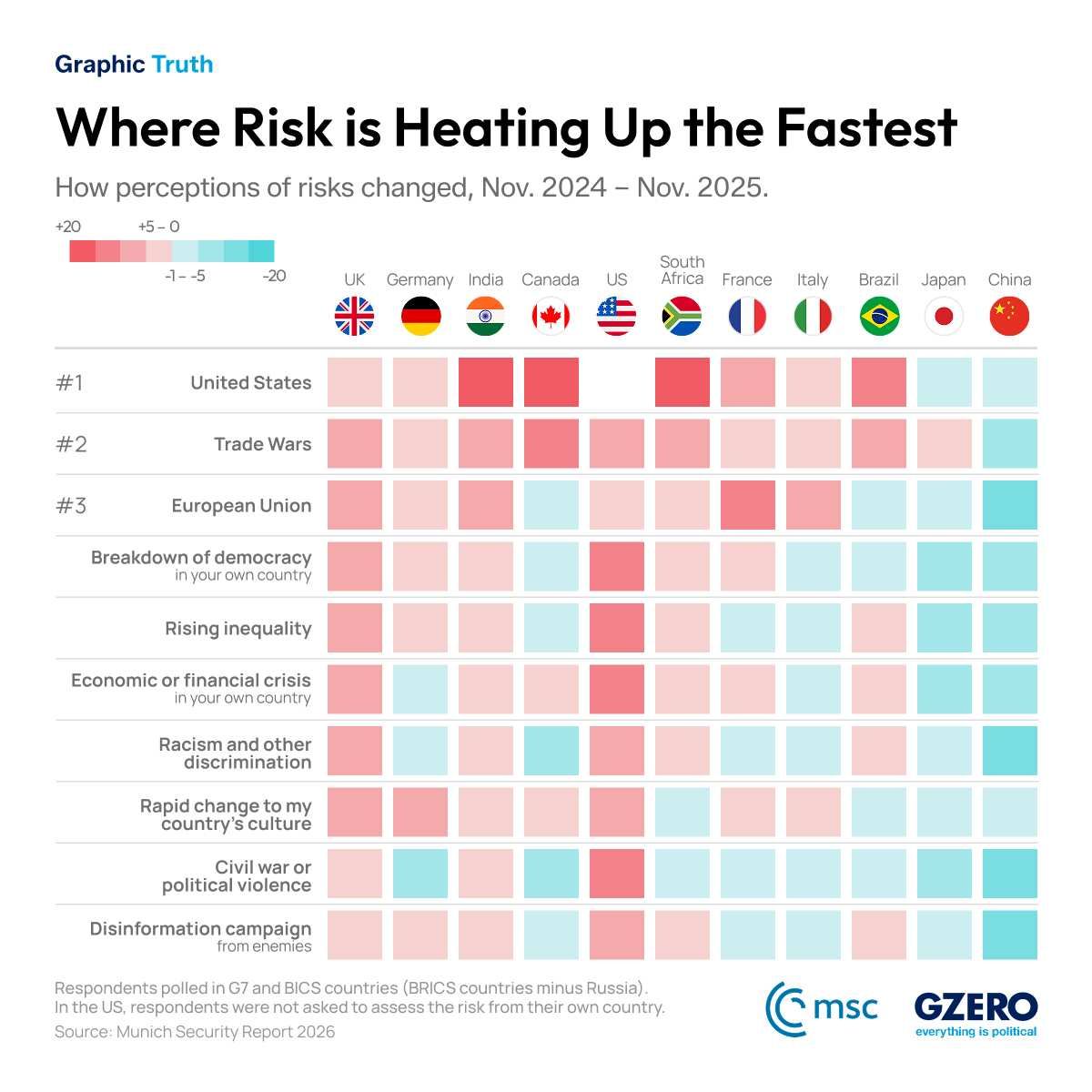 Every year, the Munich Security Conference, the world’s leading forum on international security, releases data that sheds light on how citizens view global risks.