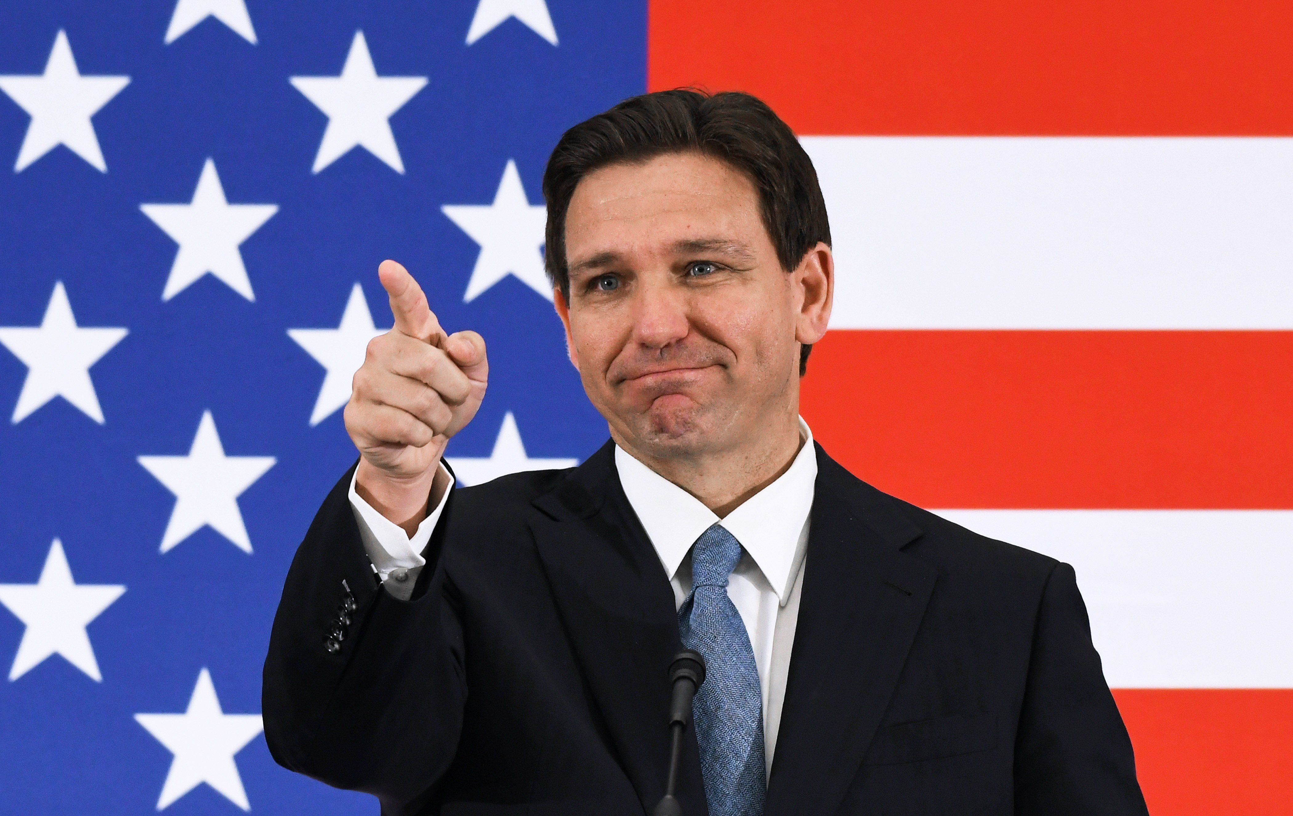 Florida Gov. Ron DeSantis during a press conference at the American Police Hall of Fame & Museum in Titusville.