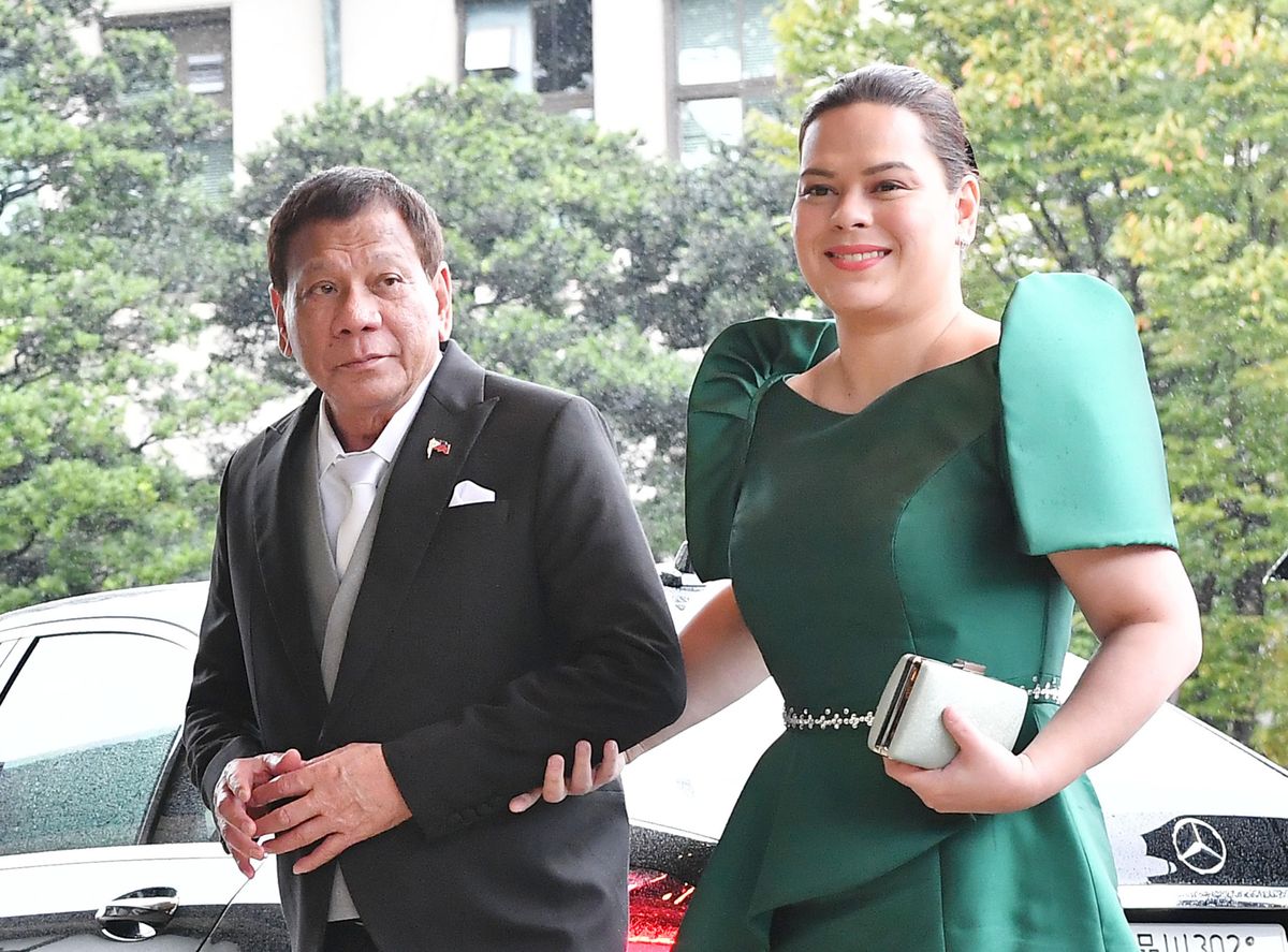 Rodrigo Duterte, President of the Philippines, and his daughter Sara arrive at the Imperial Palace to attend the enthronement ceremony in Tokyo on October 22, 2019.